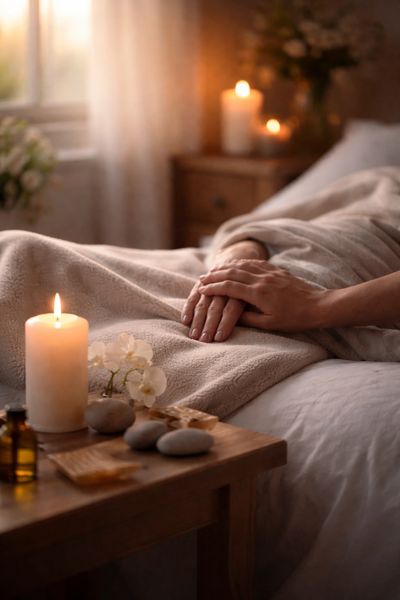 Le massage est offert à domicile ou sur le lieu de séjour de la personne, je me déplace au chevet pour offrir le soin, dans le respect du confort et des besoins de chacun.